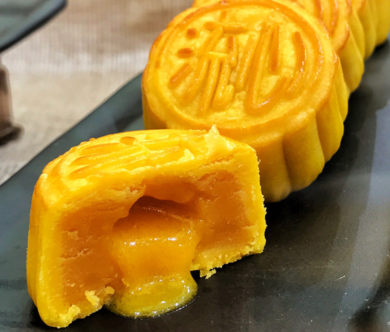 成鴨蛋黃:選用洞庭湖出產(chǎn)的新鮮鴨蛋,通過四十多天的精制,蛋黃色澤油潤(rùn)。用“烘生黃”這一先進(jìn)工藝而制作出來的月餅,蛋黃成熟后油潤(rùn)、松化,蛋黃的醇香、蓮蓉的清香交融,相得益彰。